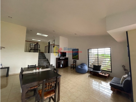 Ubicada en conjunto residencial en el municipio de Circasia, Quindío. El área del lote es de 630 M2, el área construida 250 M2. Consta de 2 pisos, el primero tiene cuatro habitaciones, cuatro baños, cocina con estilo tipo americano, sala comedor, patio de ropas. La casa cuenta con un apartaestudio independiente, el cual si se desea, se puede unir a la casa principal. Este consta de dos habitaciones, cocina, un baño y un balcón, en donde se puede observar una vista espectacular del paisaje cultural cafetero. Además incluye cuatro parqueaderos cubiertos independientes, zona bbq, jardín y hermosas zonas verdes.